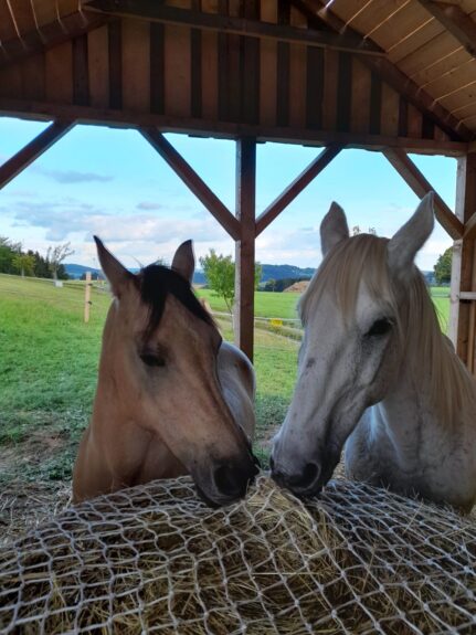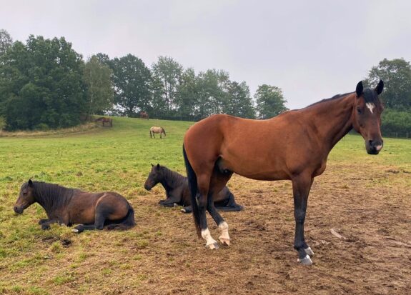 De paarden zijn enorm blij dat ze weer de hele dag in een weiland met veel gras kunnen staan. Kijk ze hier eens tevreden en relaxed zijn!